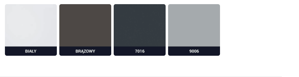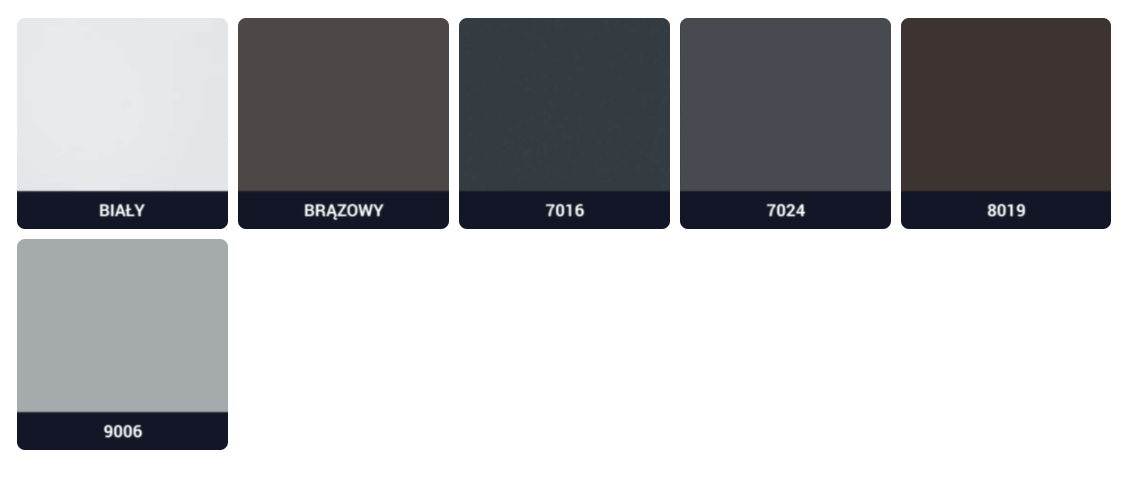 Parapety stalowe oferujemy standartowo w kolorach białym – RAL 9010, brązowym – RAL 8017, ciemno brazowy – 8019, grafitowym – 7016 albo 7024 czy srebrnym – 9006. Wszystkie kolory w połysku o grubości 0,75mm!!!