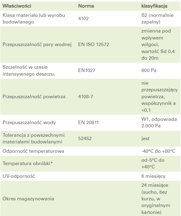 - Wspaniały potencjał schnięcia dzięki zmiennemu współczynnikowi Sd (zapobiega powstawaniu pleśni).