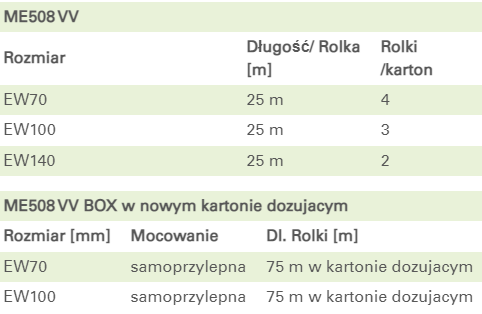Samoprzylepna illbruck ME508 folia okienna Duo VV służy do uszczelniania szczeliny przyłączeniowej okien. Posiada ona inteligentną i bardzo dobrze przyczepną samoprzylepność, która sprawia że mocowanie na niemal każdym podłożu jest proste i szybkie. Z powodu zmiennego współczynnik Sd folia może być stosowana wewnątrz oraz na zewnątrz. ME508 spełnia wymogi i zalecenia wspólnoty RAL do okien i drzwi domowych „wewnątrz ciaśniej niż na zewnątrz”. Ponadto jest ona w pełni pokrywalna tynkiem dzięki laminowaniu włóknem oraz wspaniale przylega do wielu typowych w budownictwie podłoży, np. mur, beton, PCV, metal, drewno oraz do wszystkich typowych substancji izolujących (EPS, XPS, PUR- twarda piana).